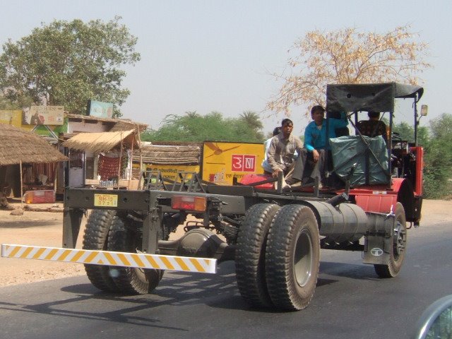 That was when a few little things happened that suddenly made me change from being a bit grumpy and tired to realising why I was here in this dusty, smelly, strange place. Out of the dawn a small troop of monkeys silently appeared, completely ignoring us, and wandered around the area as their own domain. Fascinating to me, ho-hum to Raj and the café man. About the same time a loud pop-pop-pop noise came down the road preceding a strange machine that seemed to be the bare bones of a half-finished truck. Which is exactly what it was – a home-made vehicle legally using the public roads. I saw many more of these as we travelled through Uttar Pradesh (the state surrounding Agra) but not so many in Rajasthan. Not like the truck in the photo - that is a real truck travelling between assembly plants.